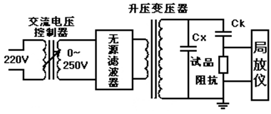 接線圖參考局部放電檢測(cè)儀接線(如下),升壓使用與普通交流耐壓試驗(yàn)操作方法相同。
