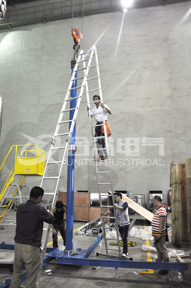 武漢合眾電氣的技術(shù)人員非常仔細、精確的進行組裝,過程雖然緩慢,但非常順利。早上11時多,整套設(shè)備已經(jīng)基本組裝完畢,等待下午的檢測。