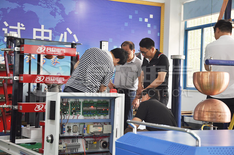 2018年6月5日,來(lái)自寶島臺(tái)灣的某電機(jī)公司客戶(hù)到訪(fǎng)武漢市合眾電氣,考察驗(yàn)收沖擊電壓發(fā)生器、變壓器測(cè)試系統(tǒng)等設(shè)備。在各部門(mén)負(fù)責(zé)人及技術(shù)人員的陪同下,臺(tái)灣客戶(hù)參觀考察了公司生產(chǎn)車(chē)間,產(chǎn)品研發(fā)測(cè)試中心,對(duì)我司沖擊電壓發(fā)生器進(jìn)行了現(xiàn)場(chǎng)測(cè)試驗(yàn)收。對(duì)客戶(hù)提出的各類(lèi)問(wèn)題,公司領(lǐng)導(dǎo)和相關(guān)技術(shù)人員均作出了專(zhuān)業(yè)細(xì)致的解答。