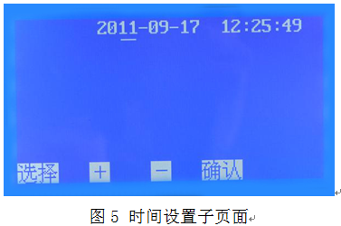 5、在圖2頁面下,按 選擇 鍵移動光標(biāo)√ 至?xí)r間設(shè)置處,按 確認(rèn) 鍵即可進(jìn)入時間設(shè)置子頁面(圖5)。
