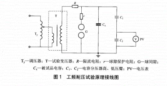 交流耐壓試驗的接線,應按被試品的電壓、容量和現場實際試驗設備條件來決定。通常試驗變壓器是成套設備。圖1是一種典型的試驗接線。