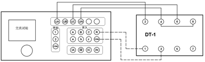 在微機繼電保護測試儀交流試驗中,設(shè)定Ua、Uc輸出額定電壓接入兩線圈,繼電器不動作,但斷開任一線圈繼電器即動作,說明2、6為同極性端子,否則2、4為同極性端子。