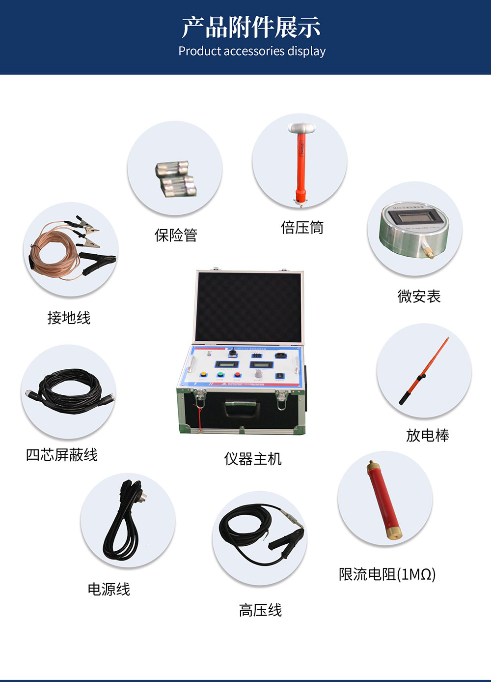 (1)精度高、測量準確??刂葡渖想妷罕碇苯语@示加在負載試品上的電壓值,使用時無需外加分壓器,接線簡單。儀器具有高、低壓端測量泄漏電流,高壓端采用圓形屏蔽數字表顯示,不怕放電沖擊,抗干擾性能好,適合現場使用。
