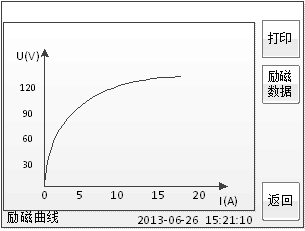 在圖2.4或圖2.6的測量結果頁面,選擇勵磁結果,將出現勵磁曲線界面,如圖2.13: