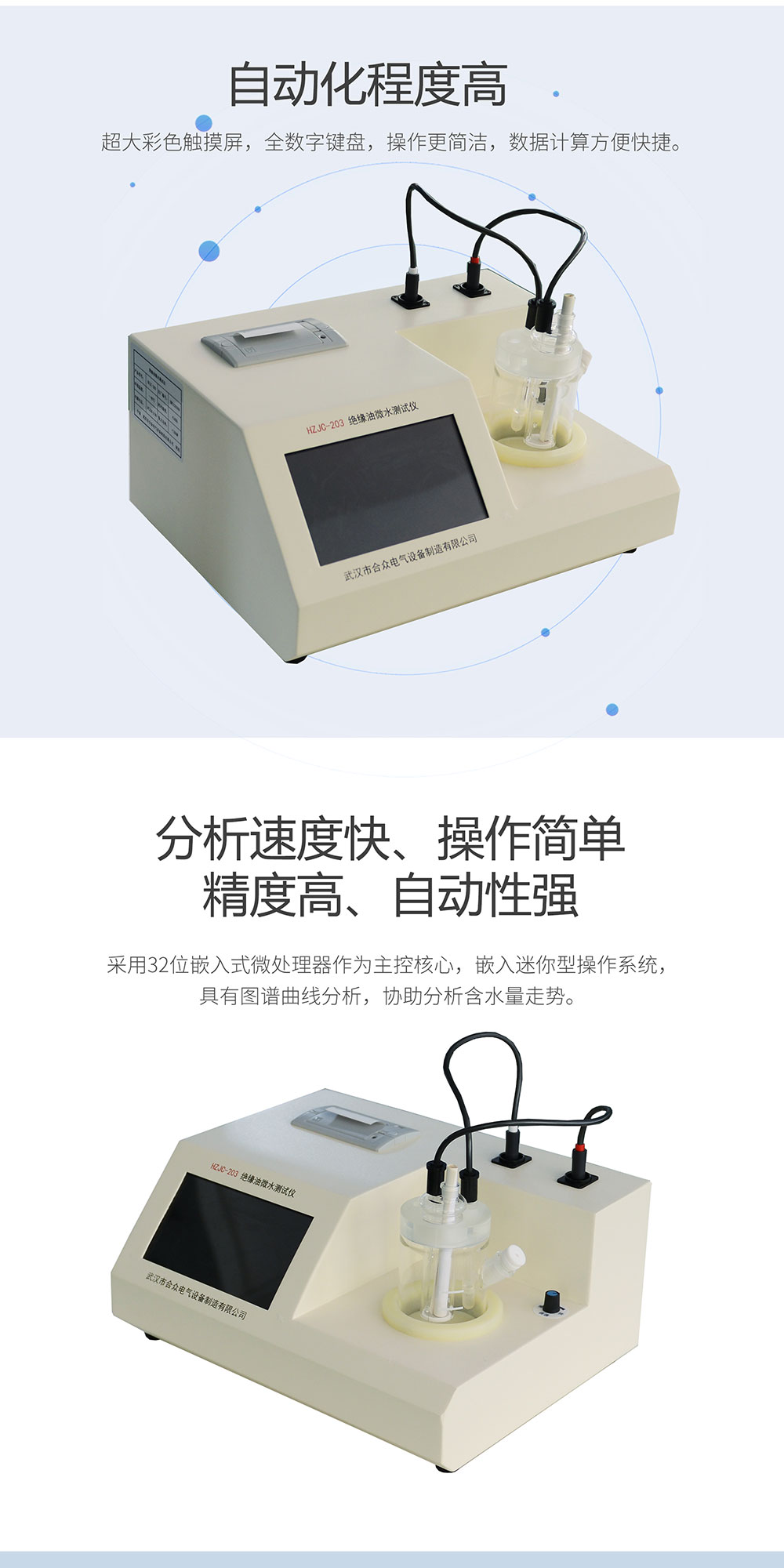 絕緣油微水測試儀,采用卡爾—費(fèi)休庫倫滴定法,對不同物質(zhì)進(jìn)行微量水分的測定,是極可靠的方法。微量水分測定儀成功的應(yīng)用了這一方法,采用了先進(jìn)的自動控制電路,32位嵌入式微處理器作為主控核心,嵌入迷你型操作系統(tǒng)。從而使該儀器工作更可靠,使用更方便。其分析速度快、操作簡單、精度高、自動性強(qiáng)等特點。廣泛應(yīng)用于石油、化工、電力、鐵路、農(nóng)藥、醫(yī)藥、環(huán)保等部門。