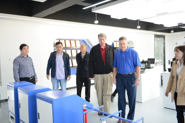 客戶一行來到我司全新的工業園區,在總經理、外貿業務部經理及相關人員的陪同下,參觀了我司新的辦公樓、產品展示廳以及配套設施。在會議室,通過全方位的數字化展示,客戶對我司新園區的規劃,高標準新廠區的建設,以及后期生產、辦公配套設施設備的升級完善有了進一步的了解。